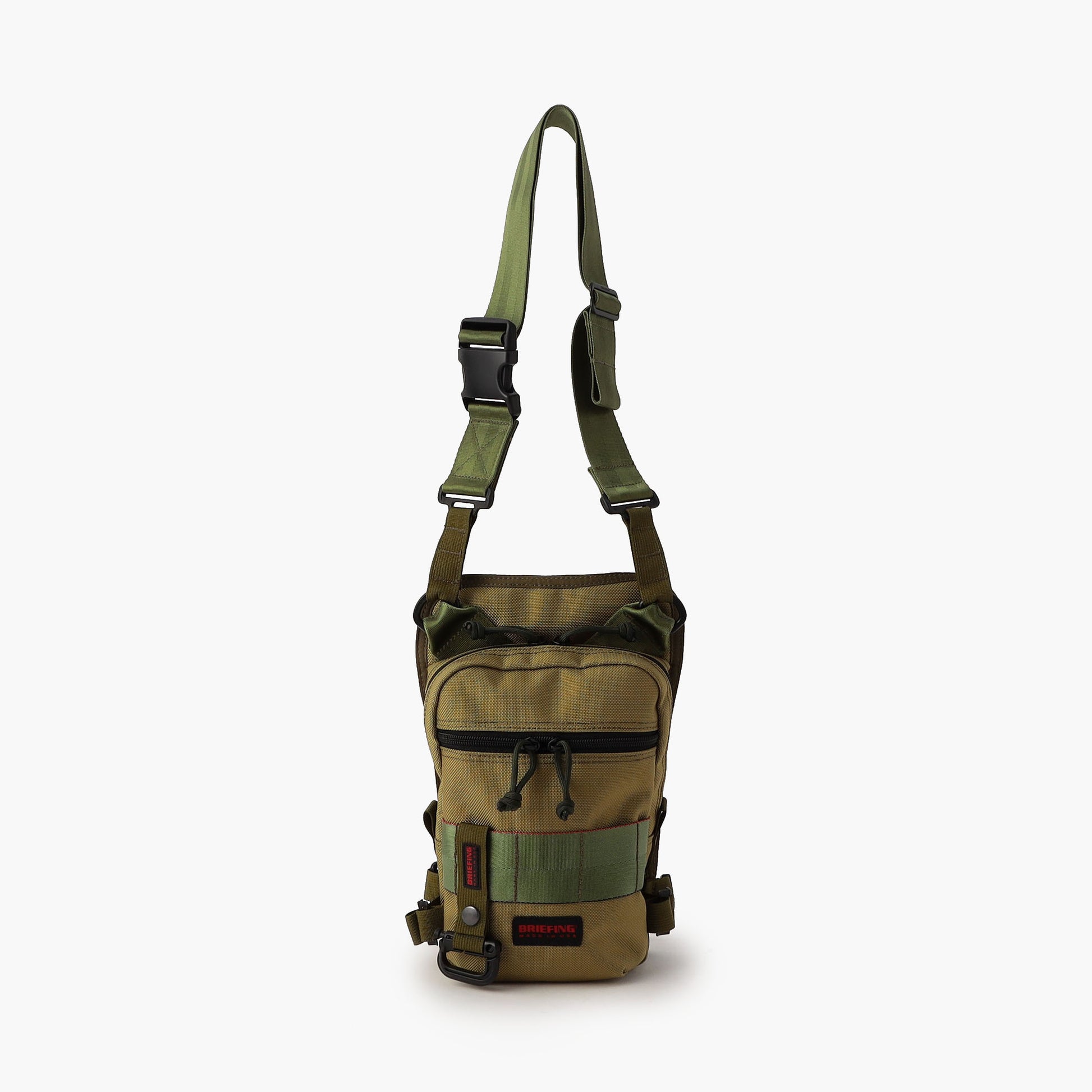 Ballistic Nylon is used, the heaviest material in the BRIEFING lineup, selected for strength, durability, and abrasion resistance. A tall body fits items like water bottles, and a thigh strap stabilizes carry for hands free activity. Includes a USA made Grimlock carabiner used with the US military MOLLE system.