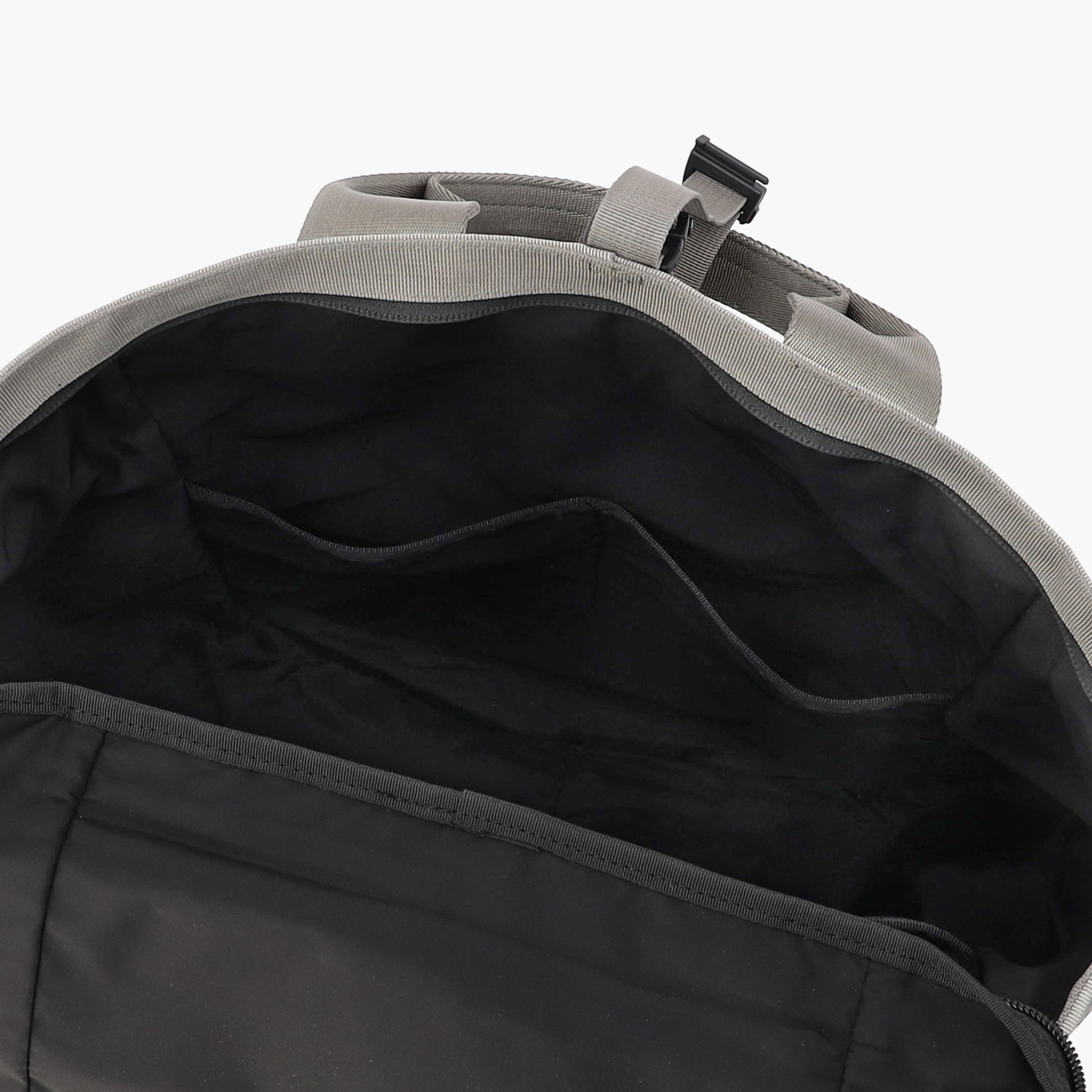 Accommodates bulky items like sportswear and secures with a top buckle closure.